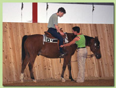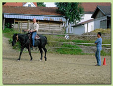 eigenem Pferd. Sollten Sie kein Pferd besitzen, stelle ich gerne ein passendes Lehrpferd zur Verfügung. Nach unterschiedlichen Konzepten erlernen Sie Ihr Pferd mit minimalem Kraftaufwand entspannt zu Reiten. Leitgedanke ist: So viel wie nötig, so wenig wie möglich! Anfänger und fortgeschrittenere Reiter können durch meine Ausbildung lockeres, sicheres und leichtes Reiten erfahren.
